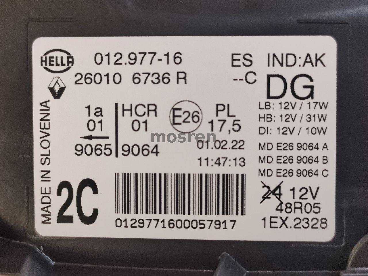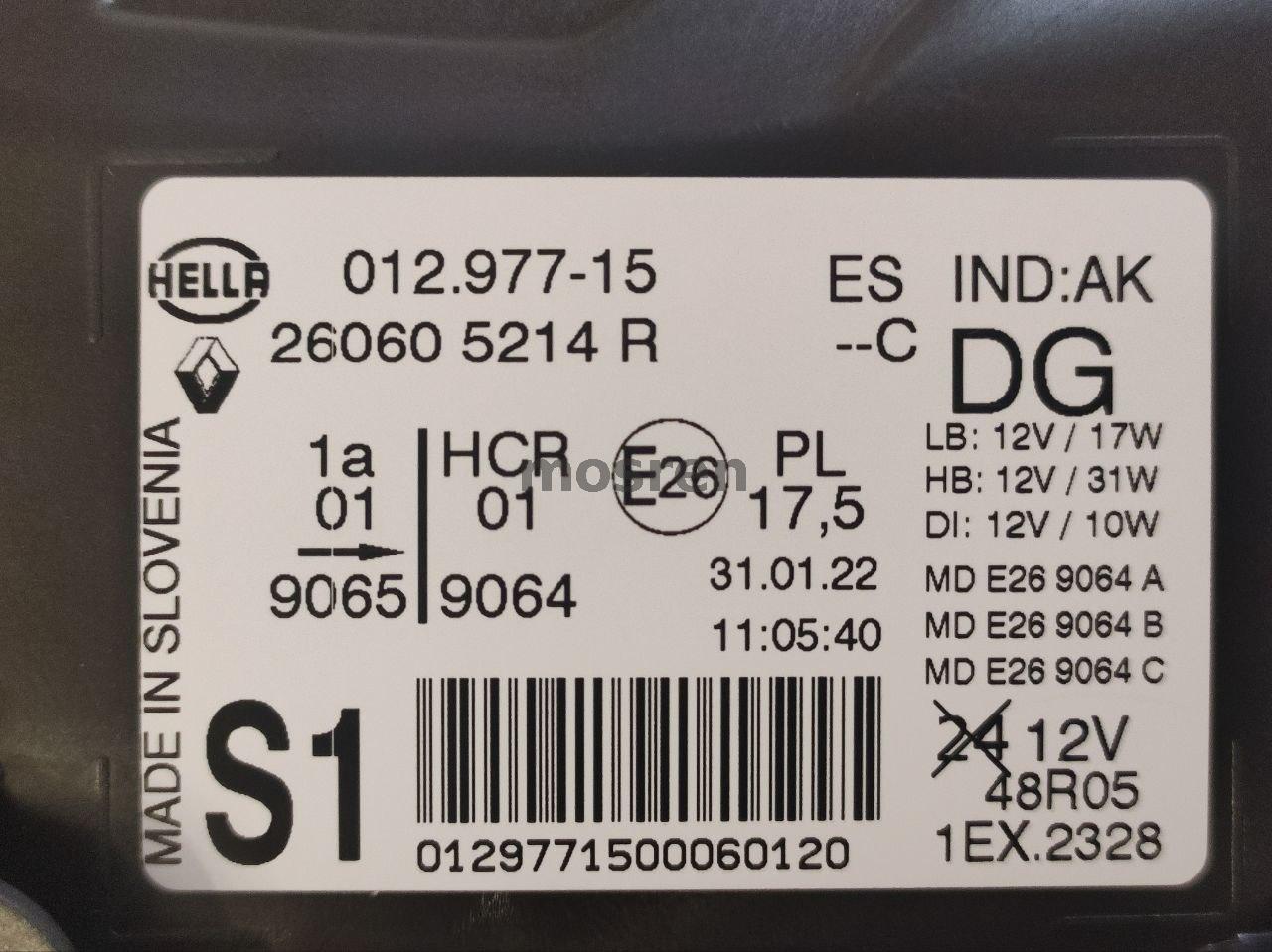 Рено Каптур фара передняя левая оригинал 260602042R. Без упаковки, новая